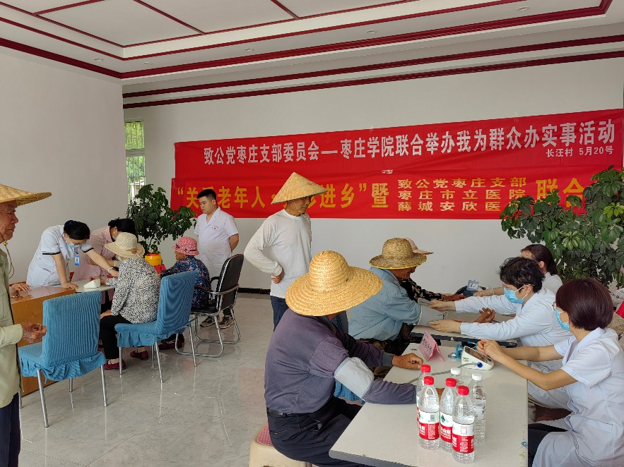 传递温暖,用行动践行初心使命。为深入开展学习贯彻习近平新时代中国特色社会主义思想主题教育工作,5月20日,枣庄学院统战部联合致公党枣庄支部到市中区税郭镇长汪村开展“我为群众办实事”系列活动—“关爱老年人,义诊进乡村”义诊活动。枣庄学院党委统战部、致公党枣庄支部党员参加了此次义诊活动。