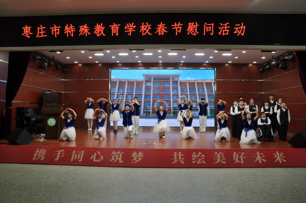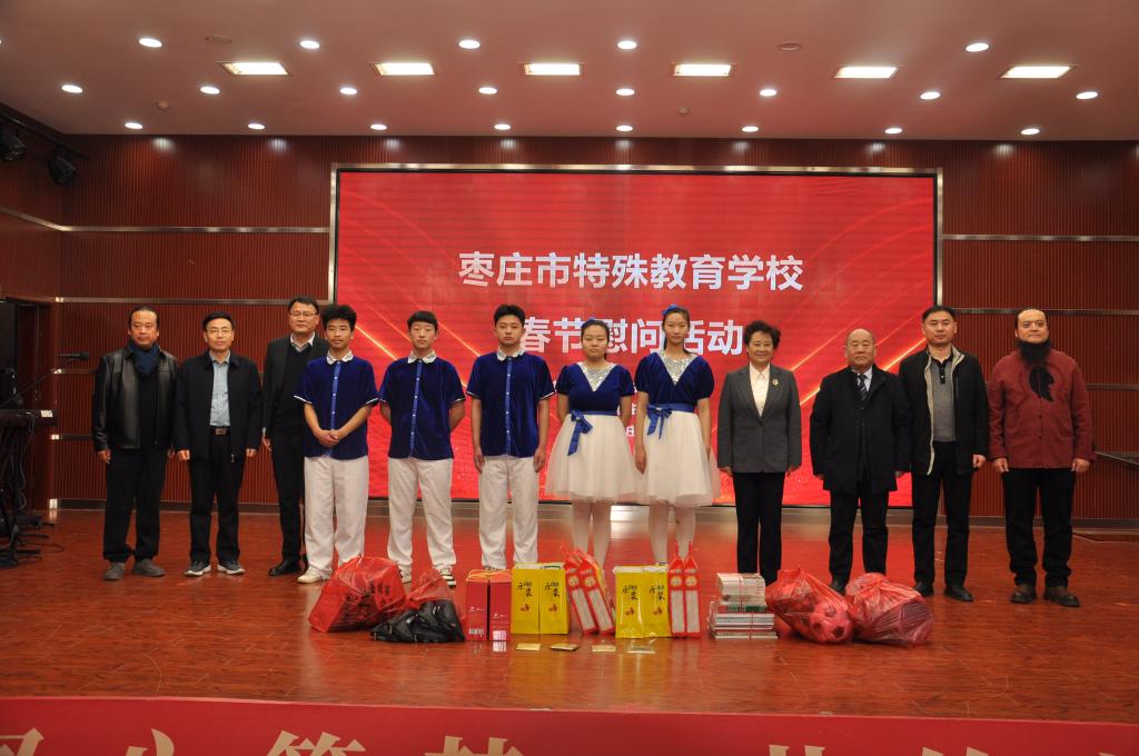 活动中,枣庄市特殊教育学校负责人介绍了学校的基本情况,与会人员观看了学生们带来的手语歌表演并向学校捐赠了春节慰问品。捐赠仪式后,农工党党员艺术家们送上了精彩的文艺慰问演出,书法家们现场挥毫泼墨,创作出一幅幅寓意美好的福字,用实际行动向孩子们送上温暖的关爱和新春的祝福,向特殊教育老师们表达崇高的敬意。