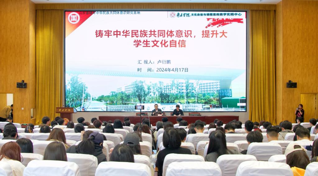 为深入学习贯彻习近平总书记关于加强和改进民族工作的重要思想,切实做好铸牢中华民族共同体建设工作,提高中华民族共同体思想认识,铸牢中华民族共同体意识的思想基础,4月17日下午,我校在薛城校区崇德楼报告厅、市中校区文科楼报告厅同步举办铸牢中华民族共同体意识专题讲座,邀请山东省铸牢中华民族共同体意识研究基地专家,作了《铸牢中华民族共同体意识,提升大学生文化自信》专题讲座,各学院团总支书记、第38期青马培训班全体学员参加。