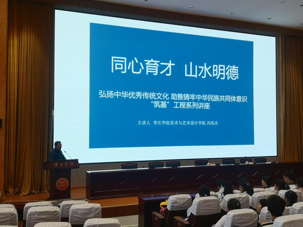 10月21日,枣庄学院党外专家服务团成员、民建会员、美术与艺术设计学院副教授冯兆杰应邀为枣庄三中部分师生作了“同心育才 山水明德——弘扬中华优秀传统文化 助推铸牢中华民族共同体意识‘筑基’工程”专题讲座,枣庄学院党委委员、统战部长林勇及枣庄三中师生100余人参加了报告会,报告会由学校党委统战部办公室主任郑欢主持。