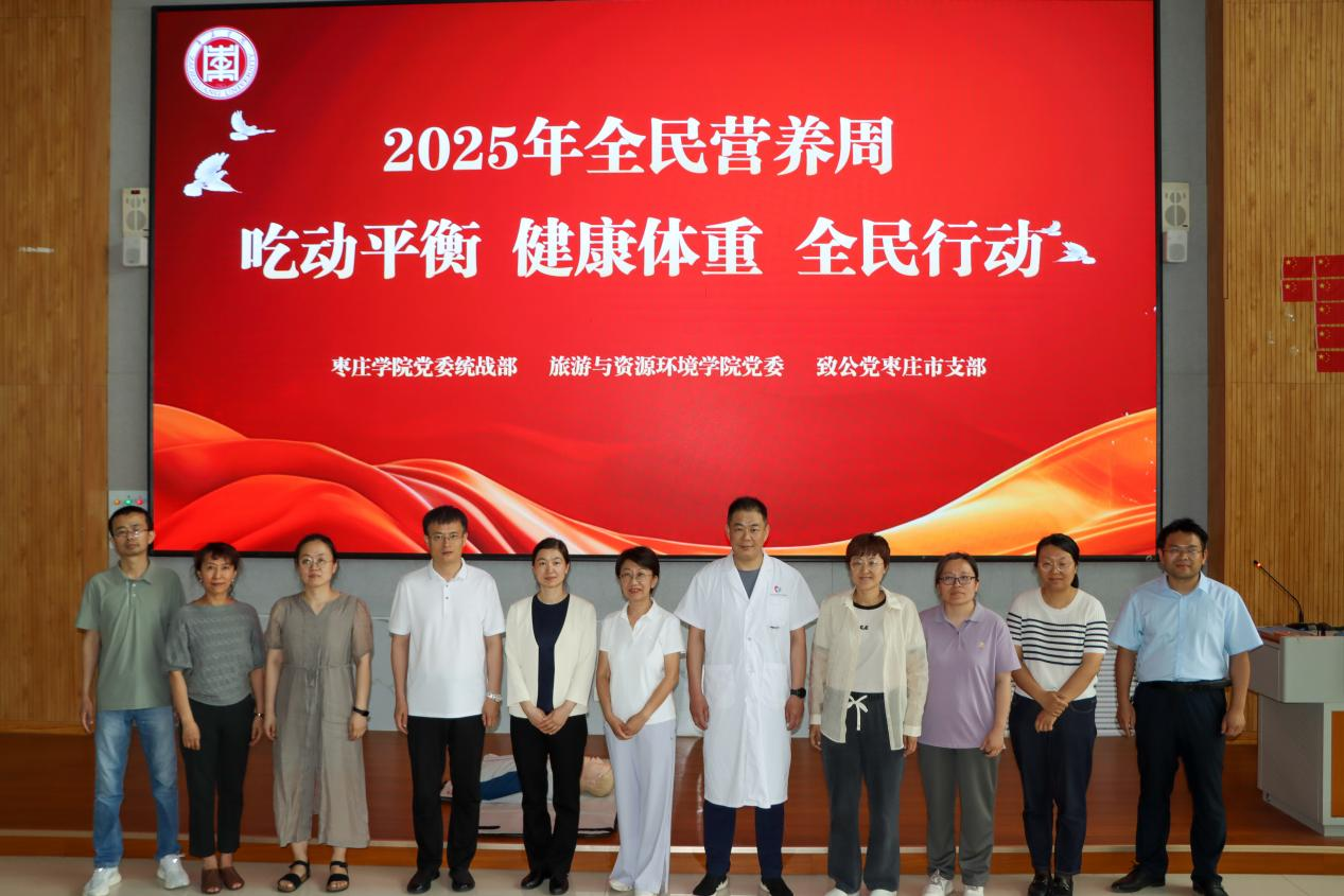 为筑牢校园健康防线,培育“合理膳食+科学运动”生活理念,5月22日下午,我校联合致公党枣庄市支部、枣庄市妇幼保健院共同主办“全民营养周--吃动平衡·健康体重·全民行动”活动,枣庄市妇幼保健院营养内分泌科主任金晨,校党委统战部相关负责同志及旅游与资源环境学院师生100余人参加活动。活动由致公党枣庄市支部委员、校旅游与资源环境学院院长王满堂主持。