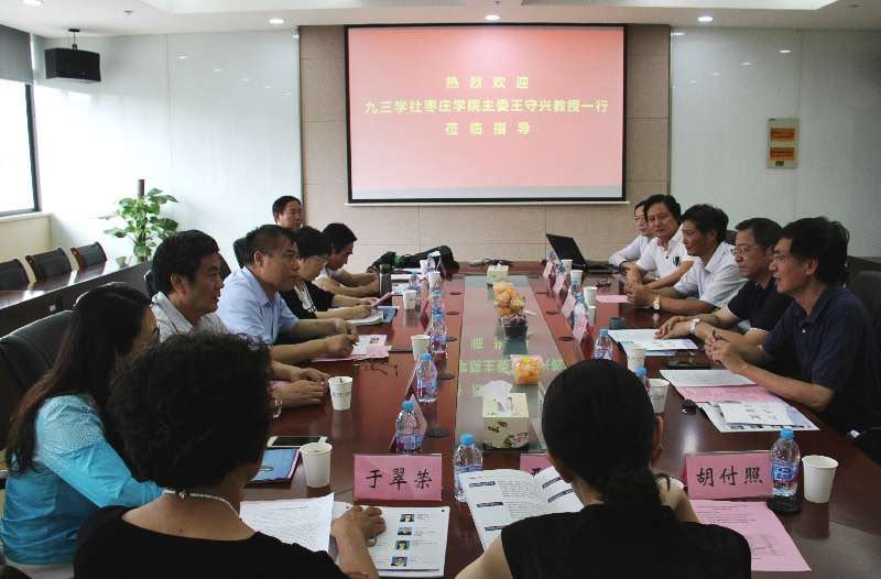 首先,我社人员与九三学社江南大学委员会进行了座谈。座谈会上,九三学社江南大学委员会副主委曹炳汝教授和枣庄学院支社主委王守兴分别介绍了双方与会人员情况及各自基层组织的社员发展情况,朱明教授和周楠迪教授介绍了江南大学九三学社社员的教学科研工作情况,高瑛教授和胡付照教授介绍了江南大学九三学社社员服务无锡地方经济建设工作情况和经验;九三学社无锡市委副主委任可奇介绍了市委支持九三学社江南大学组织发展情况及参政议政工作情况。