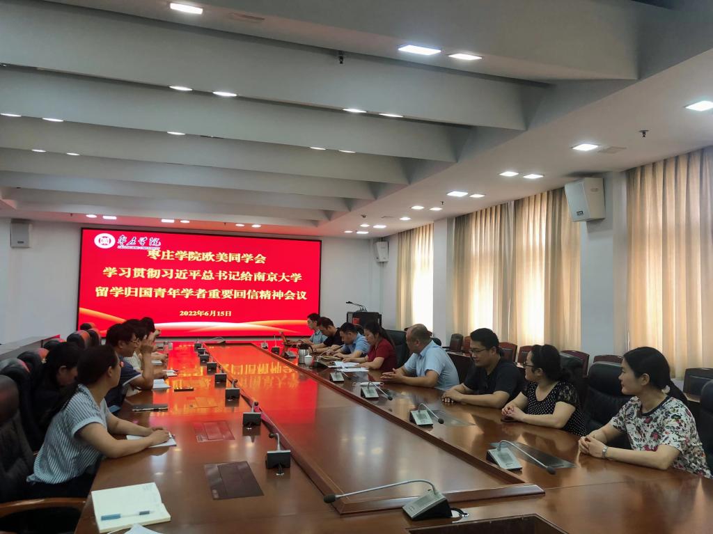 枣庄学院欧美同学会会长韩建侠领学了习近平总书记给南京大学留学归国青年学者的回信。大家结合自己学成归国的经历畅谈了学习习近平总书记回信精神的感受。大家一致认为,习近平总书记在考察中国人民大学、出席庆祝中国共产主义青年团成立100周年大会并发表重要讲话后不久,又给南京大学的留学归国青年学者回信,充分体现了以习近平同志为核心的党中央对青年、青年工作和留学归国青年的高度重视和殷切关怀,让人备受鼓舞,倍感振奋。大家纷纷表示将心系“国家事”、肩扛“国家责”,为全面建设社会主义现代化国家、实现中华民族伟大复兴的中国梦积极贡献留学人员的智慧和力量。作为新时代留学回国人员,要勇担时代责任使命,坚定理想信念,讲好中国故事,锻炼过硬本领,厚植爱国情怀,牢记习近平总书记嘱托,奋勇向前,致力前沿科学原创探索,实现核心技术重大突破,为学校早日实现国内一流的高水平应用型大学奋斗目标作出积极的贡献。